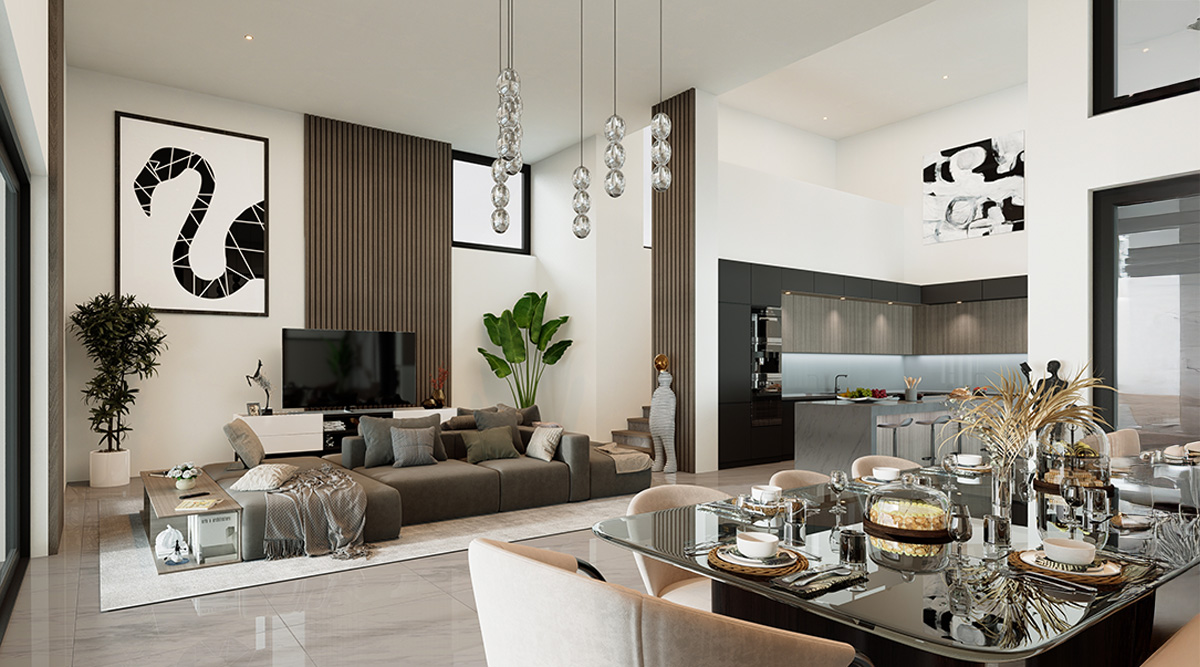 Groot meubilair, zoals een groot bankstel, salontafel of eettafel kunnen de grote ‘lege’ ruimte goed opvullen. Zoek vooral uit wat u mooi en gezellig vindt en wat past bij uw stijl. Let erop dat de meubels niet te laag zijn. Anders vallen ze voor het oog weg in een ruimte met hoog plafond.